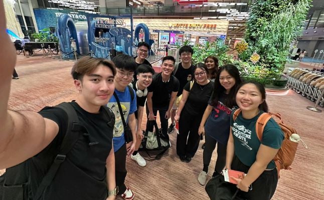 NUS Law students at Changi Airport in early 2025, on their way to visit their peers from Thammasat University Faculty of Law (TU Law) in Bangkok as part of CATPLI, a peer learning initiative by NUS Law’s Centre for Asian Legal Studies and TU Law.