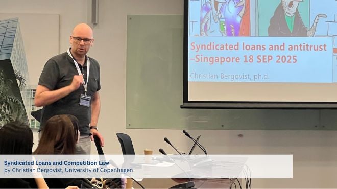 Associate Professor Christian Bergqvist’s topic was syndicated loans and competition law. Professor Bergqvist started with the concept of syndicated loan and the major actors involved, including the borrower, lenders, and the arrangers. He highlighted the main advantages such as providing banks with better risk management, allowing for larger loans beyond the willingness or ability of a single bank, and reducing information asymmetry between borrowers and lenders.