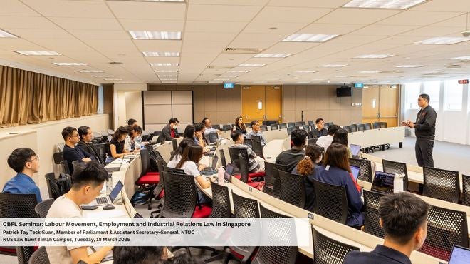 NUS Law’s Centre for Banking and Finance Law was privileged to host Mr Patrick Tay, Member of Parliament (Pioneer SMC) and Assistant Secretary-General in the NTUC, to speak to students, practitioners and members of the public on the topic ‘Labour Movement, Employment and Industrial Relations Law in Singapore’ on Tuesday 18 March 2025.