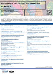 International trade has been identified as one of the leading causes of biodiversity loss. Yet, little has been said about both the negative and positive effects that international trade law, and in particular innovative environmental provisions found in bilateral and regional trade agreements, can have on biodiversity. This two-day workshop features a group of young and established scholars who will kick-start this conversation by focusing on the integration of biodiversity in free trade agreements signed by Asian countries.