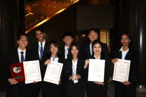 The Japanese Division team, comprising Karen Lee ’26, Bryan Ong ’26 and Tianna Pay ’26, clinched first place in the Arbitration Round and won the Herbert Smith Freehills Kramer Award. This marks the first time a team comprising only non-native Japanese speakers has won the award. The English Division team, comprising Tan Yan Han ’26, Rdu Dillon ’26, Arjun Chhabra ’27, Jonathan Tan ’27 and Ian Yam ’27, were second runners-up in their division. The team finished fourth runners-up in the overall rankings and was awarded the Steering Committee Special Award for outstanding bilingual performance in the competition.