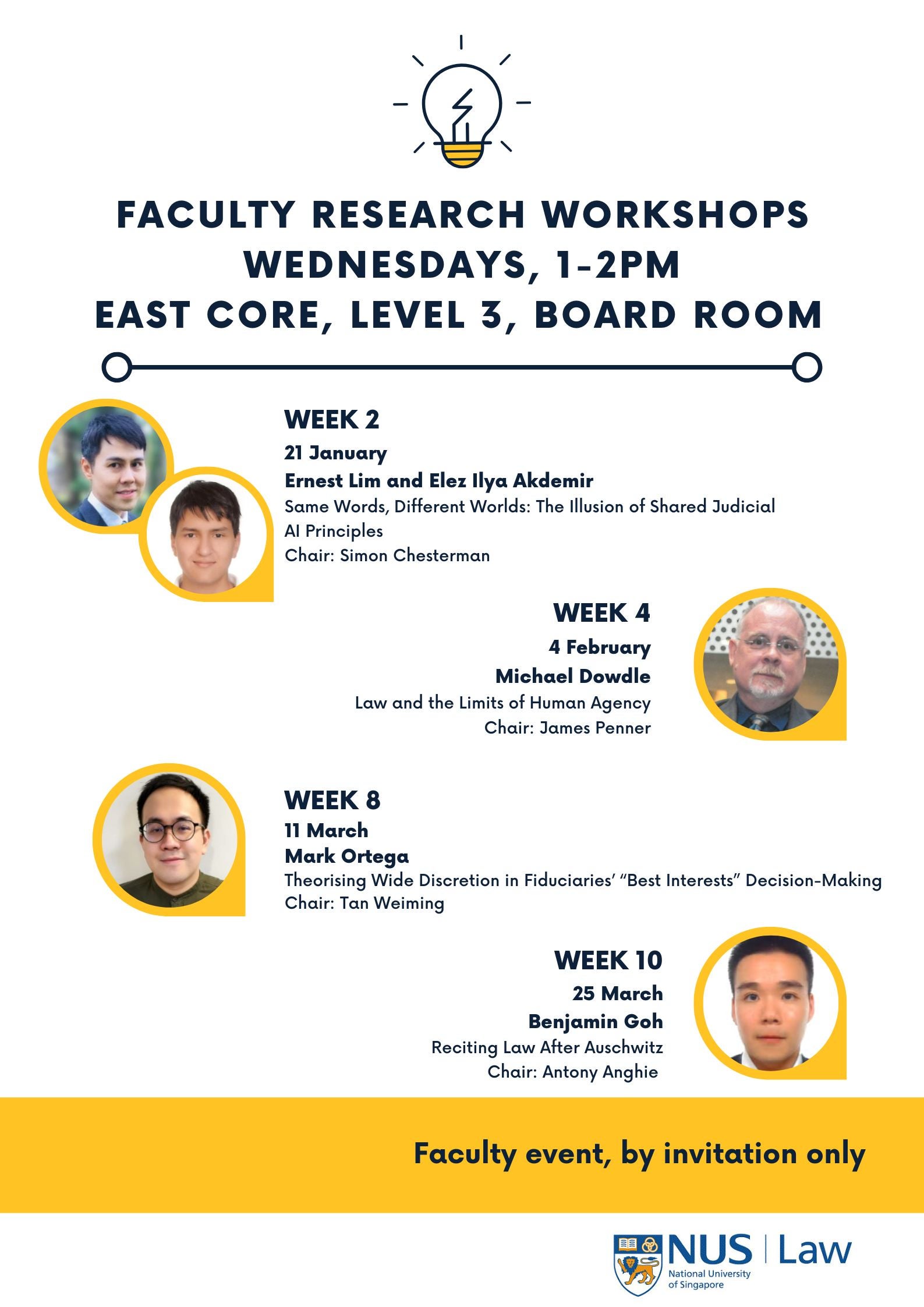 A forum to share works in-progress of Faculty members and Visiting Professors at NUS Law. Papers are circulated in advance to allow for informed and challenging feedback and discussion at each session. Participation is by invitation only.