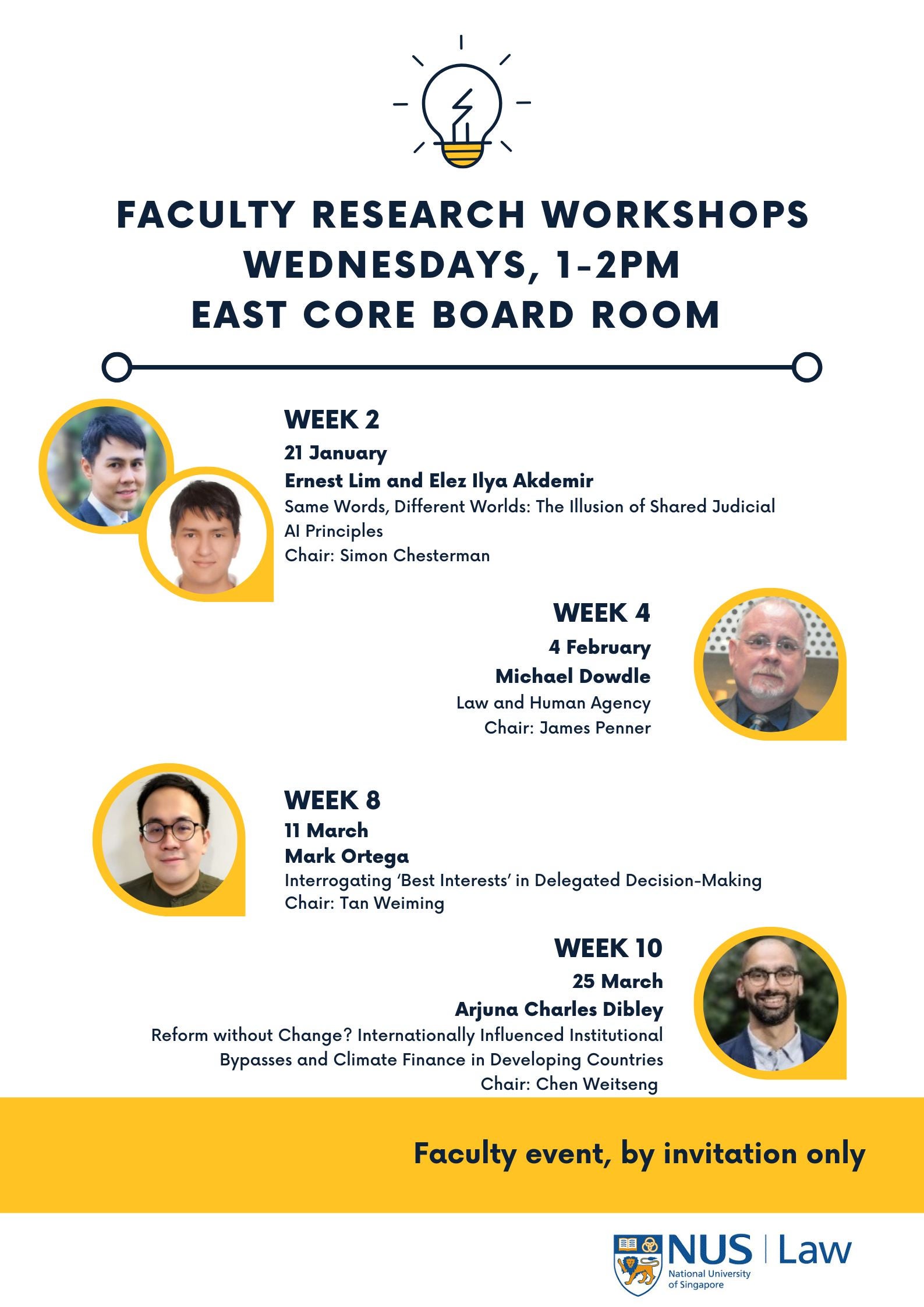 A forum to share works in-progress of Faculty members and Visiting Professors at NUS Law. Papers are circulated in advance to allow for informed and challenging feedback and discussion at each session. Participation is by invitation only.